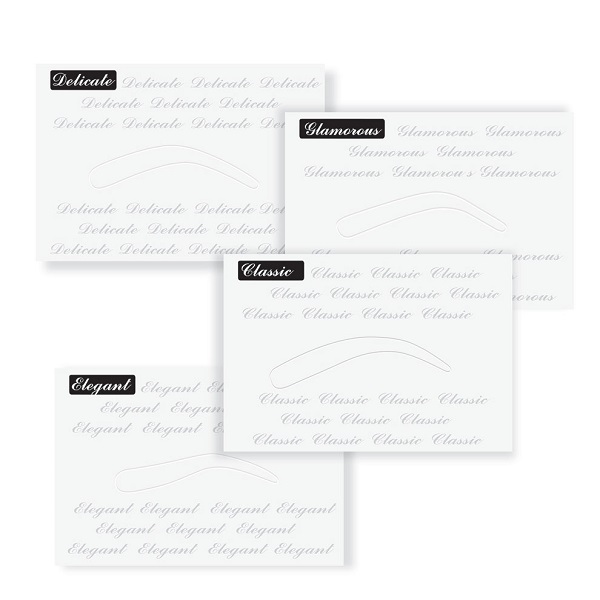 Έτοιμοι οδηγοί για το σχήμα των φρυδιών, με 4 διαφορετικα σχηματα.Το ακουμπάτε στα φρύδια και με ένα μολύβι μπορείτε να κάνετε το περίγραμμα.Στην συνέχεια αφαιρείται τις τρίχες που χρειάζεται.
