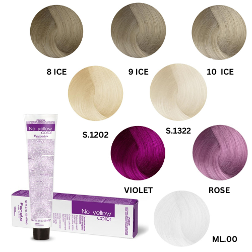 Βαφή μαλλιών No yellow κατά των κίτρινων και χρυσών ανεπιθύμητων τόνων εμπλουτισμένες με έξτρα βιολέ χρωστικές.Αυτή η σειρά ICE είναι ιδανική για αποχρώσεις στον τόνο του 8, 9 και 10 με μια πιο ψυχρή απόχρωση του πάγου.Αναμιγνύονται ιδανικά με 10, 20, 30 η 40 volume οξυζενέ της Fanola.Η δοσολογία είναι 1 προς 1,5 (οξυζενέ) με χρόνο αναμονής 30-35 λεπτά.Η Βαφή μαλλιών ξανθό πλατινέ του πάγου No yellow ICE θα γίνει το αγαπημένο σας προϊόν.Extra Tips: Η χρήση του σαμπουάν και της μάσκας No yellow είναι απαραίτητη μετά την χρήση των βαφών Ice . Έτσι θα έχετε πάντα ένα ψυχρό και καθαρό χρώμα στα μαλλιά σας. Αν το τελικό αποτέλεσμα έχει πιο έντονα πορτοκαλί η κόκκινα ανεπιθύμητα σημεία χρησιμοποίηστε το σαμπουάν και την μάσκα No orange. Είναι ιδανικά για την καταπολέμηση των κόκκινων και πορτοκαλί σκιών.